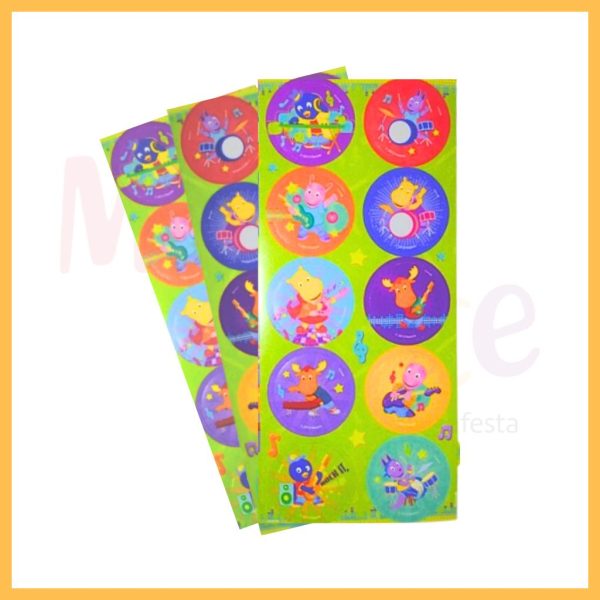 Decore cada detalhe da sua festa musical com o Adesivo Redondo Backyardigans Banda! Perfeitos para personalizar suas lembrancinhas, fechar sacolas surpresa, decorar tubetes, caixinhas e muito mais.