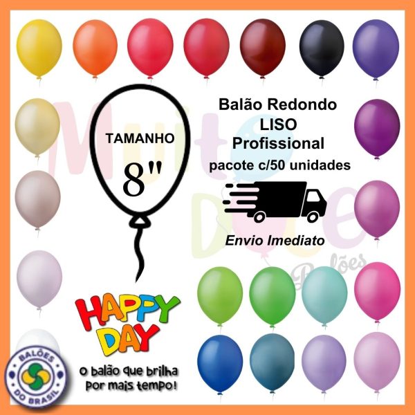 Balão Liso 8 Polegadas – 50 unidades – Bexiga de Látex – Happy Day