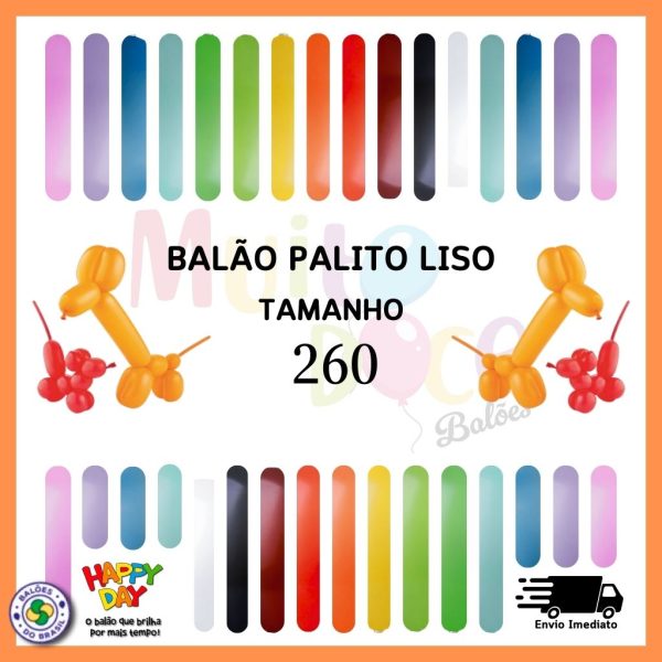 Balão de Látex 260 Polegadas – 30 unidades – Bexiga Palito/Canudo – Happy Day
