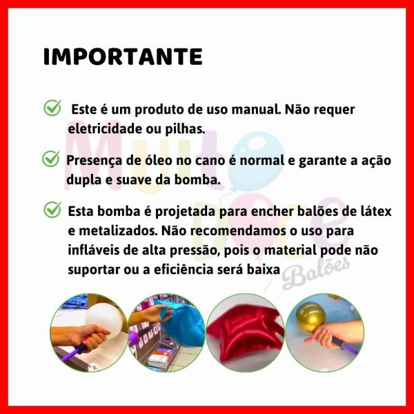 Bomba Manual para Balões – Dupla Ação – Infla Látex Redondos, Canudos e Metalizados