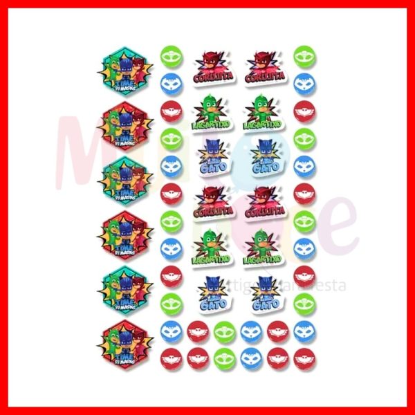 Mini Tags Apliques Decorativos Pj Masks – 50 Unidades – Mini Personagens Pj Masks